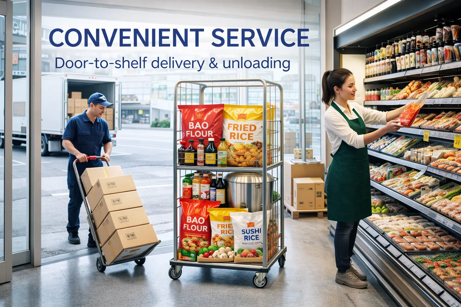 Our “door-to-shelf” delivery and unloading service helps streamline your operations, saving you valuable time, labor, and operational effort.