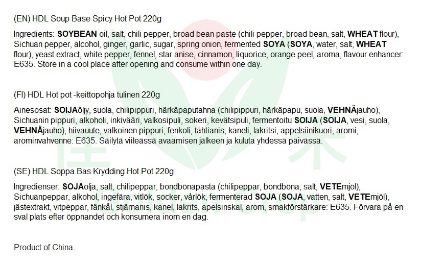 HDL Soup Base spicy hot pot 220g | 海底捞 清油火锅底料 220g
