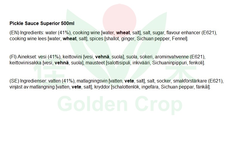 Pickle Sauce Superior 500ml | 宝鼎 天鱼牌 糟卤 500ml